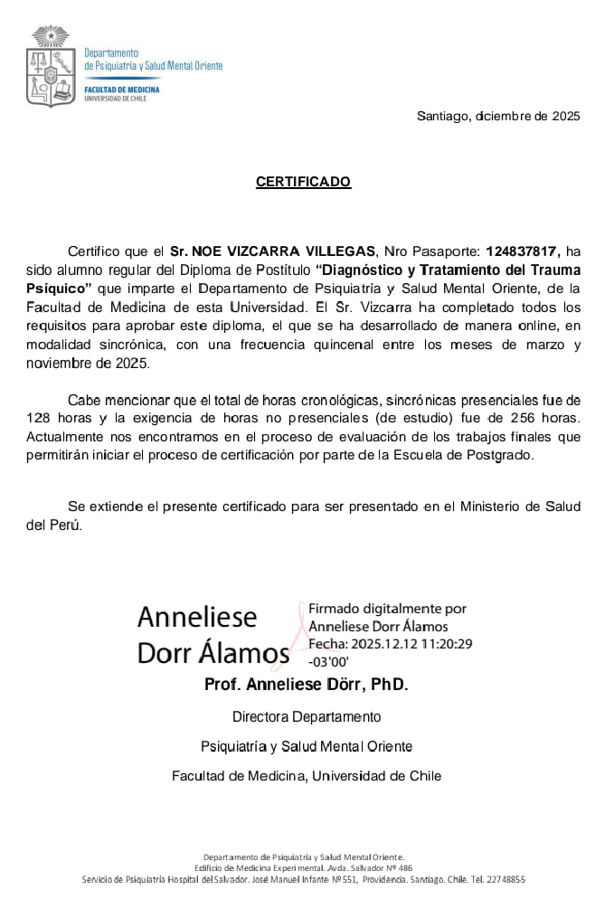 Evaluación, Valoración y Certificación de daño psíquico por trauma.